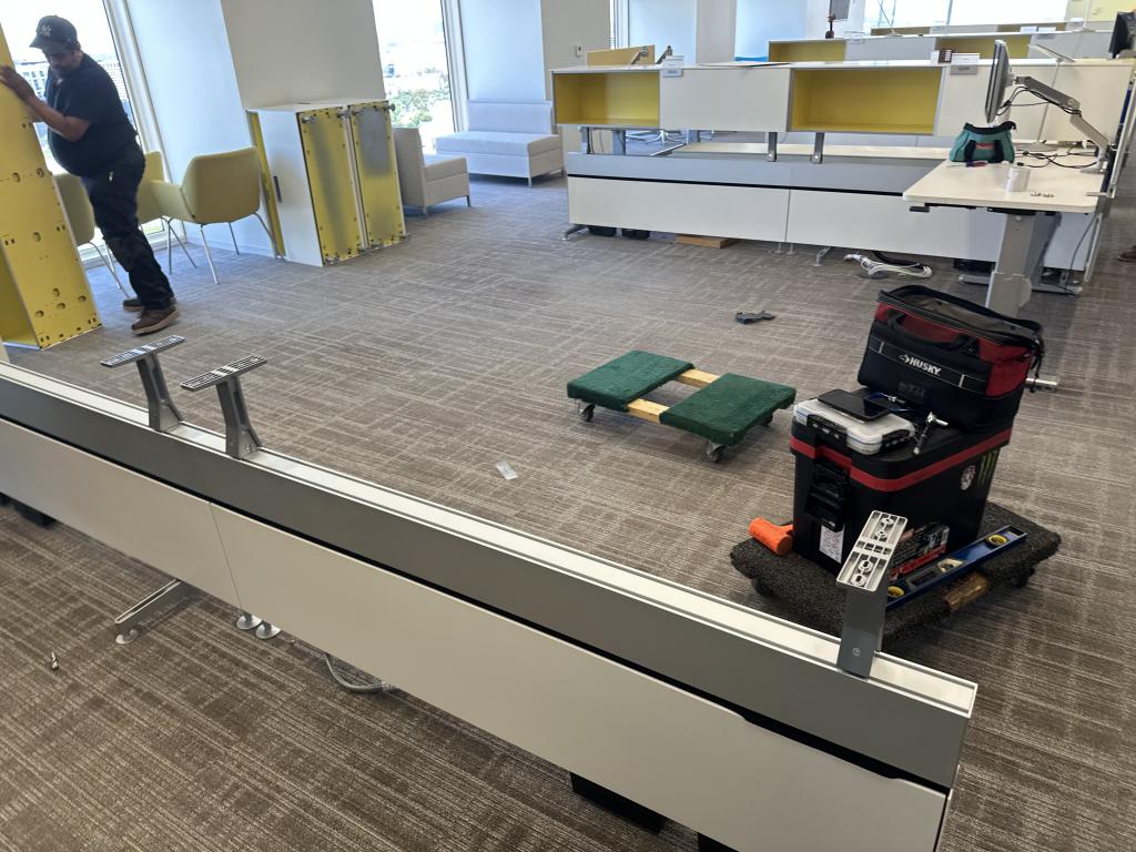 Description We have these Steelcase Benching 6' wide power beams that are perfect for benching, cubicles and height adjustable electric tables. Each beam is 6' wide and can be joined together and hardwired by a 4 circuit Steelcase base feed.