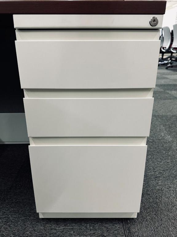 Description Includes (1) 72" W x 24"D Cherry surface, (1) 48" W x 24" D Cherry surface, (1) 4H personal storage tower / wardrobe / bookcase/BBF, (1) Top supporting pedestal Box/Box/File, (1) 36"W shelf, paper management. Choice of National Code Power, Chicago Code Power, or Non-powered. Storage Finish: Chalk (TR-0AK). Worksurface Finish: Medium Cherry (OH-0AD). Panel Finishes: Main - Striae-Beam (C1-0AJ), Accent - Shimmer-Water (WS-003), Trim/Slat Tile - Chalk (TR-0AK). Requires a licensed electrician to connect to the building power supply. Data/IT components are not included.