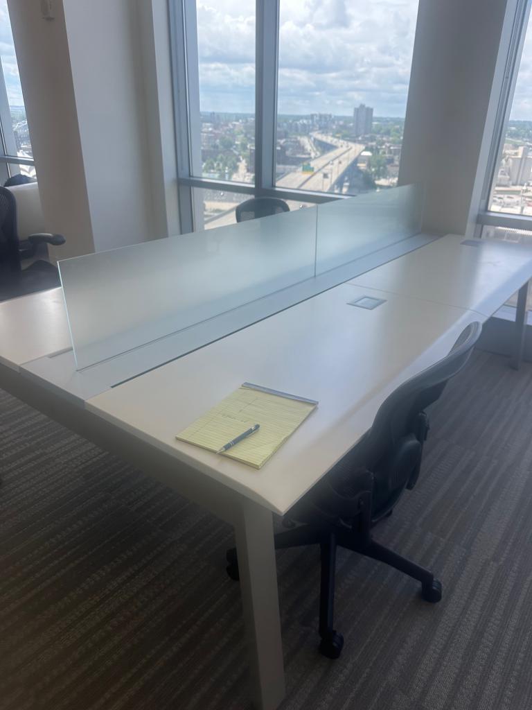 Description Pod of 4 Benching Systems by Herman Miller Minimum Order is One Pod of 4 Available In July!! Each Station is 30" Deep x 54" Long 6 Pods of 4 Available so 24 Total Used but in good overall working condition , Comes w normal wear and tear