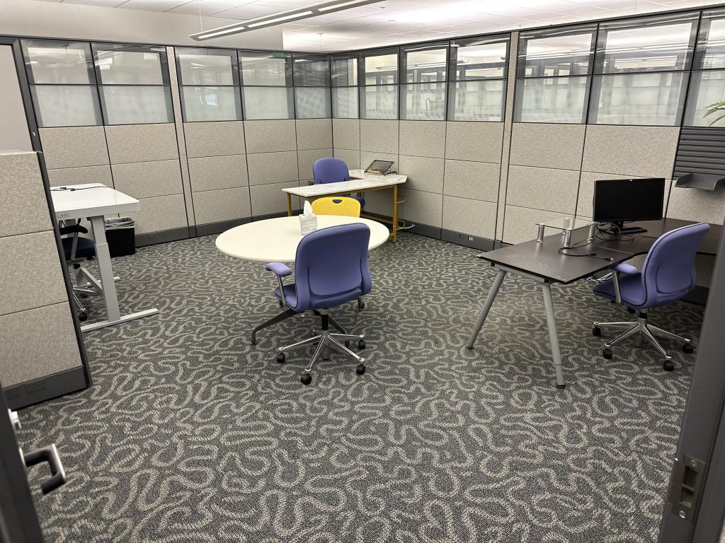 Primary sizes are 8'x10', 15'x8', 14x15 and we can make any size out of 30" and 24" wide panels. Power and overheads available as well as custom worksurface or build outs.