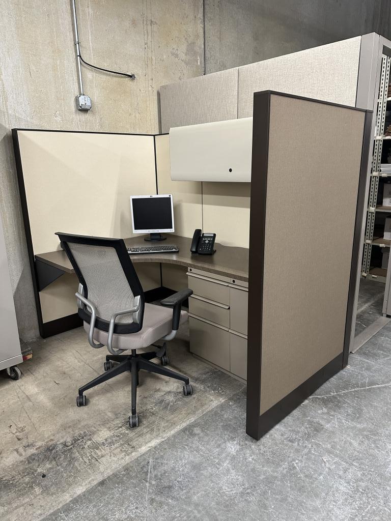 Description Check out the earth tone finishes on this Knoll Dividends inventory! Inside fabric is a light brown while outside is dark cocoa fabric with plenty of storage and huge amount of workspace in these 8x10' stations. We only have 10 stations so contact us before they are gone.