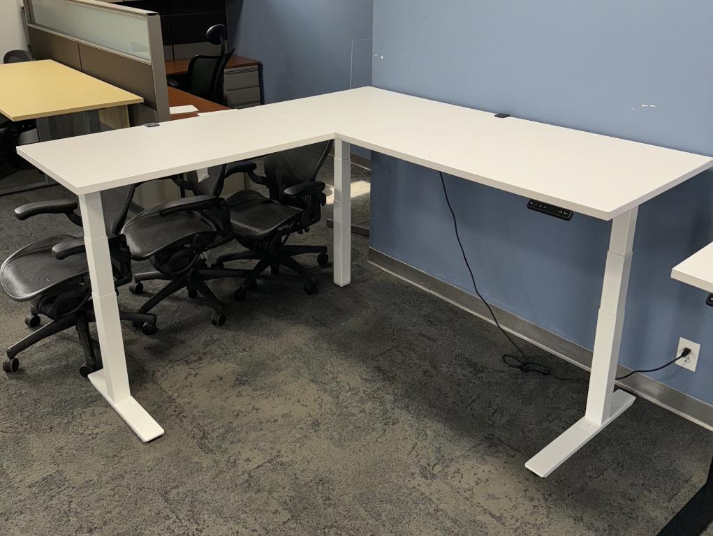 Description The ultimate in workspace flexibility with the L-shaped sit-stand desk. Its spacious design, complete with an added return, offers ample surface area. The entire desk adjusts seamlessly in height, promoting comfort and productivity. The scratch and stain-resistant white laminate top pairs beautifully with a white base.*WHS_0724*