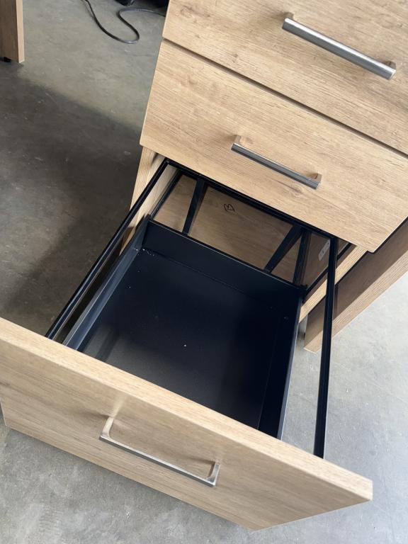 Description The Linea Italia Grain Modern L-shaped desk in an oak laminate finish effortlessly merges style with functionality. Designed to create a streamlined and efficient workspace, this desk features a box/box/file pedestal, offering versatile storage options for your office essentials. For added security, the pedestal includes a lockable drawer, ensuring your important documents and personal items are safely stored.*WHS_0824*
