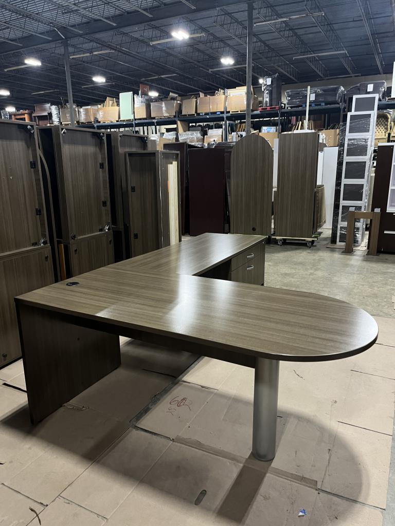Description Now Available, Indiana L Shaped Desk with a beautiful Virginia Walnut finish, these desks are a great way to add a modern touch to any office space. This desk includes a 2 Drawer Lateral File. ( Actual Depth is 86" ) *WHS* 01/24 - 6 on long term rental