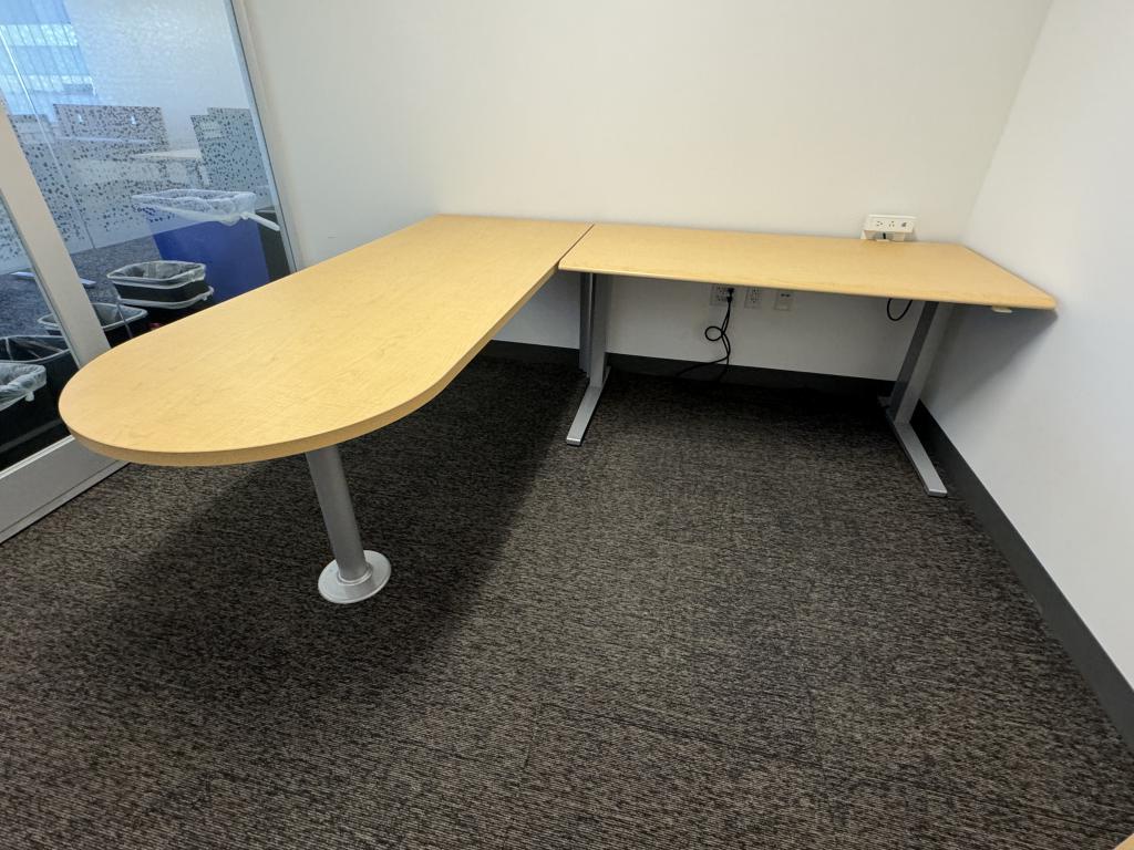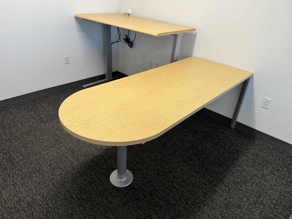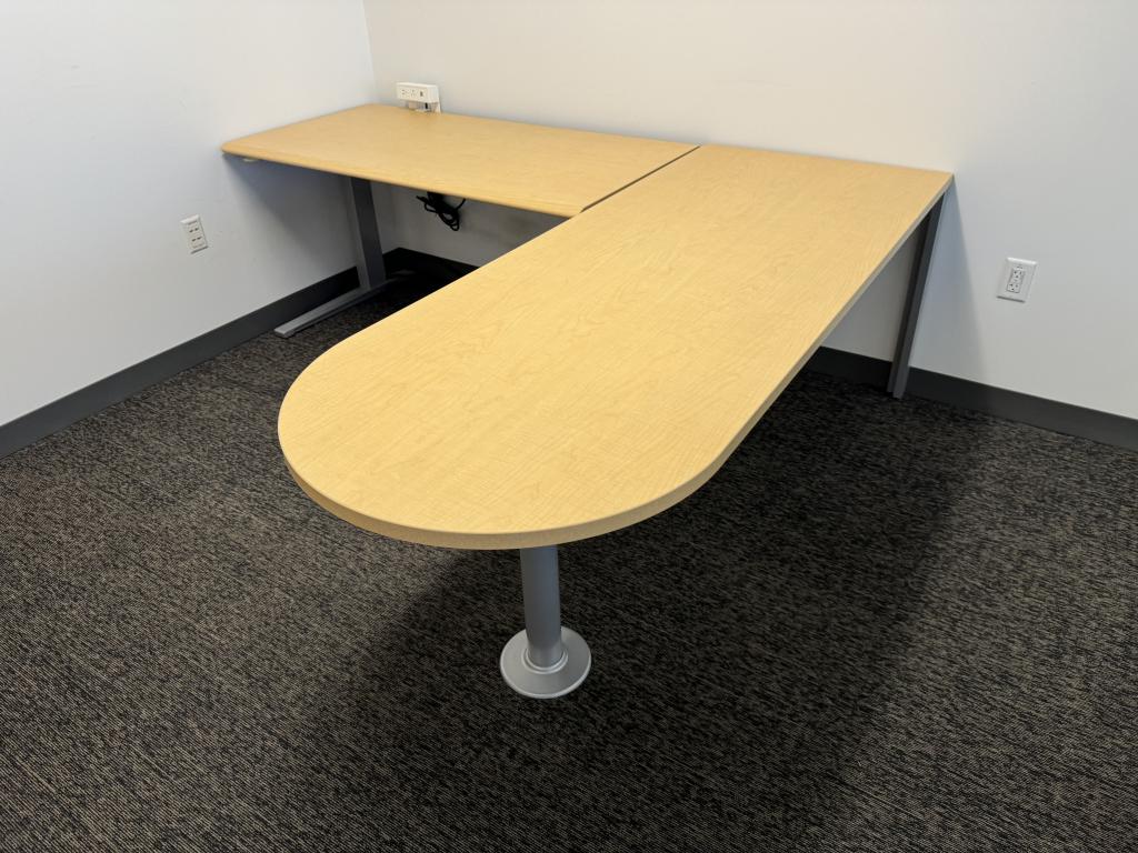 Description We have this Herman Miller 78"x30" Bullet Shape Maple Desk with modesty panel. This modern style desk can be stand alone or complimented with a matching height adjustable base for a return.