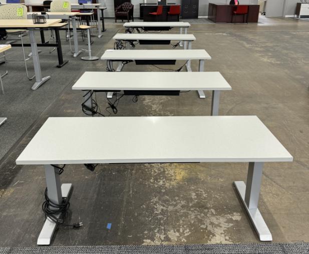 Description Do you often feel like standing while working instead of sitting down for 8 hours? Check out our Steelcase Electric Sit-Stand Desks. They have a grey speckled top with a silver base. They measure 60"W x 24"D.