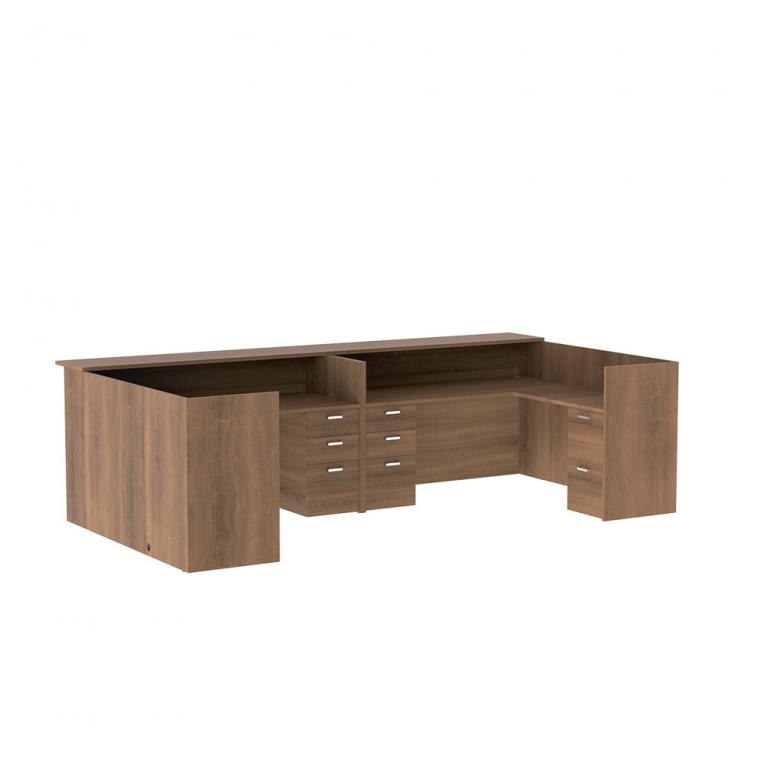Description Amber Series provides durable, thermofused laminate pieces for an affordable price. With interchangeable parts, you can create a left or right handed reception L-desk with as little or as much storage as you need. Select to add the glass transaction counter for a polished look. Available in 5 laminate finish options. Call or email for you quote on a great, affordable Amber reception desk today!