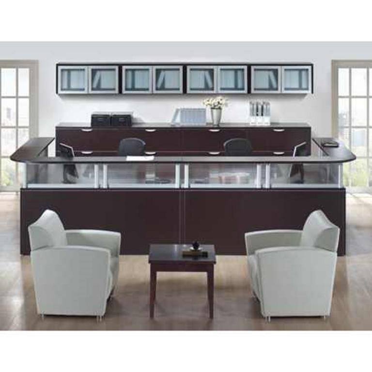 Description Modern Reception Desk NEW Double Reception Desk Effective time management often requires a delicate balance between privacy and interaction with colleagues. Our Borders Desktop mounted panel system can be retrofitted to most Performance laminate workstations in a manner that allows you to define your workspace the way you want. Whether you choose 24" high or 36" high panels for complete privacy, 12" high panels for moderate privacy or transaction tops for reception areas - we have a solution that will work.