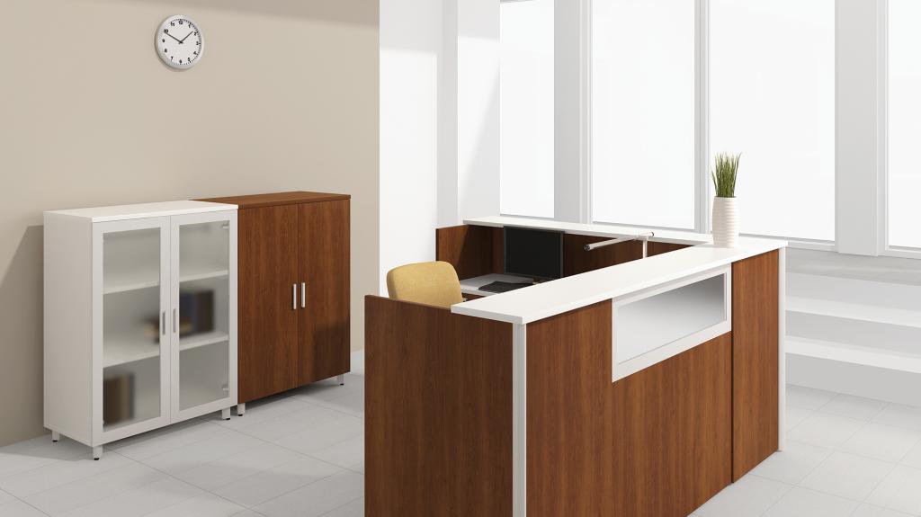 Description Every business needs a reception desk that will impress its customers. This new line of Group Lacasse reception desks are available in many different styles, colors and finishes. From modern to traditional, from wood veneer to laminate, we offer a reception desk that fits not only your business, but your office space as well. Call us to price out the desk for you!
