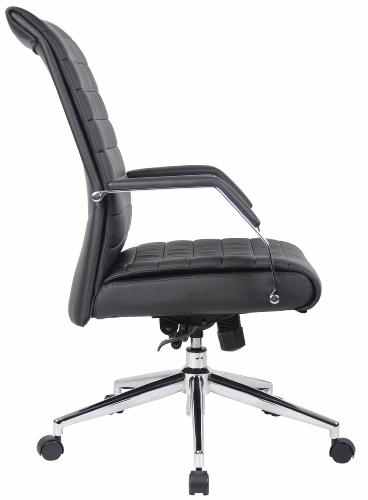 Description Executive High Back Styling beautifully upholstered in CaressoftPlus. Featuring metal arms with padded arm rests, adjustable tilt-tension control, pneumatic gas lift seat, height adjustment, large 27" Chrome base for greater stability and hooded double wheel casters. Available optional knee tilt model B9442. Arm Height: 26-29"H, Seat Size: 20"W x 19"D, Seat Height: 18.5-21.5"H.