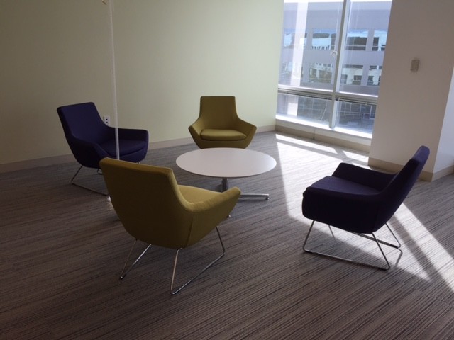 Description Give your guests the wow factor when they walk into your reception area. We have a large selection of contemporary seating with matching side tables for the office or for the home. Pictured is a recent install for a client where we designed several lounge/reception areas. Please call us and let us design your space!