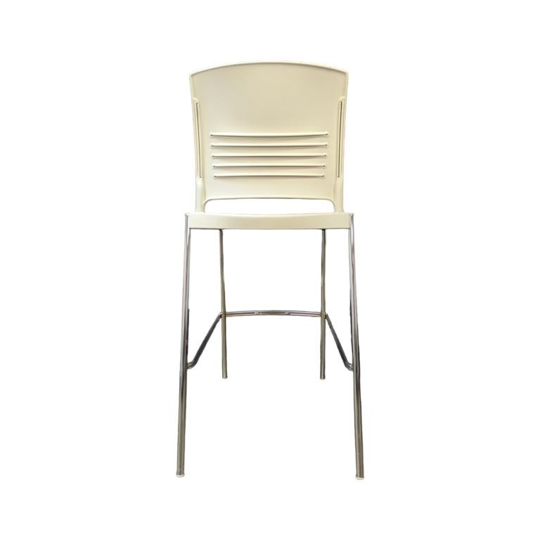 Description KI Strive Poly Bar Height Chair- White w/ Brown Padded Seat SKU: KI240175