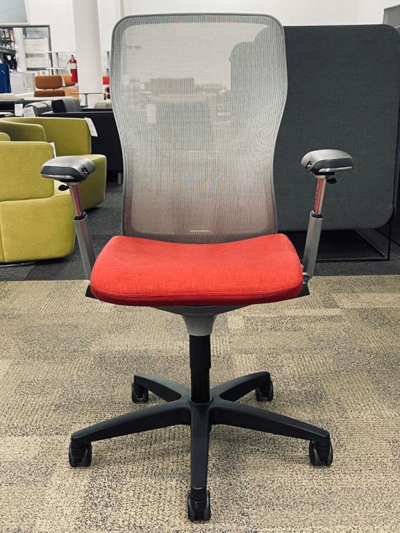 Description Pre-owned Allsteel Acuity Task Chair with graphite/mist mesh back and an orange fabric seat. Black Frame. Ergonomic Features: Seat Height Adjustment Seat Depth Adjustment Tilt Lock Recline Tension Arm Height Adjustment Arm Width & Depth Adjustment Arm Pivot Adjustment