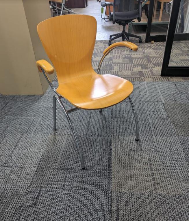 Description The Kimball Bingo chairs is a fully wood chair, that is in a honey maple finish & chrome frame. These chairs are stacking & great for saving on space.
