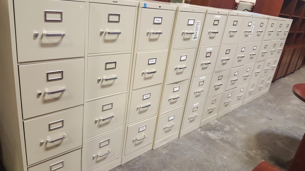 Description We've just acquired a huge lot of HON dark gray 5 drawer lockable vertical file cabinets! They are in great shape! The most affordable, pre-owned cabinets around.