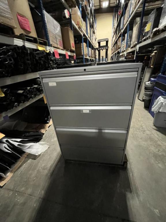 Description 4 Drawer Silver File Cabinet 39" H x 30" W x 18" D Locking Counterweight included. Adjustable hanging rails.