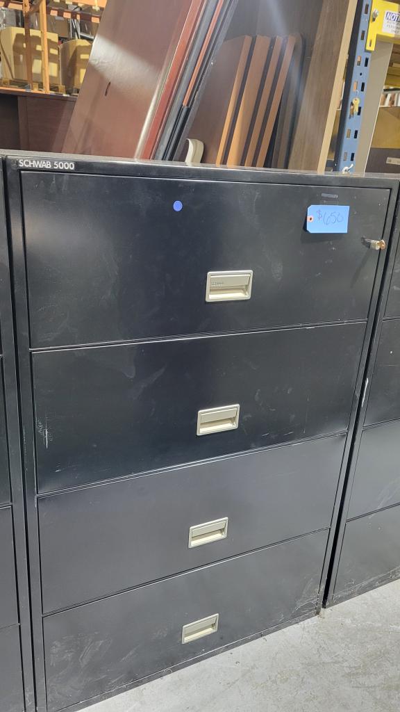 Description Black Metal File Cabinet. 4-Drawer Lateral with Locking Drawers. Ideal for any office, home office, or workspace!