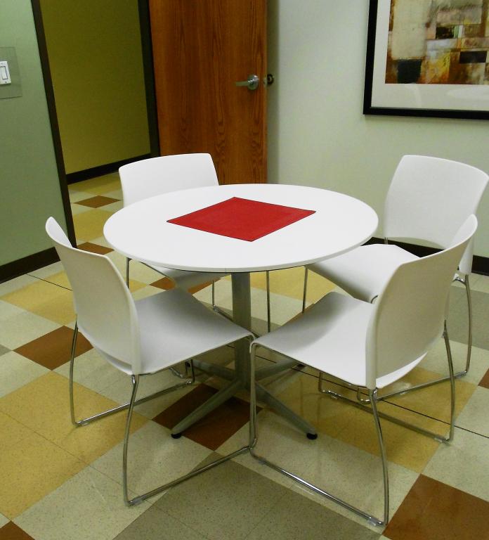 Description Breakroom Tables and With Chairs are now available from our Waukegan store. These tables and chairs are ideal for use in cafeterias and break rooms to auditoriums, training rooms, and small meeting spaces. The chairs would make for convenient side chairs. Contact us today for pricing and availability.