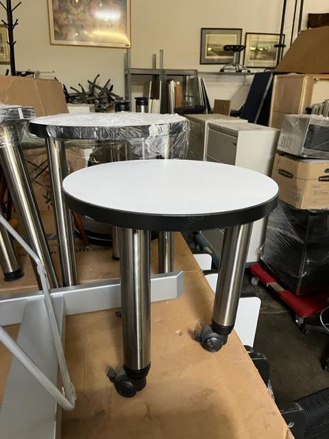 Description Casters that locks in place White tops with black t-molding trim. Avail. 20"rd. = 06qty We have other sizes are avail. upon requests. 30"rd = 05 qty --120ea. 36"rd = 04 qty--145ea.
