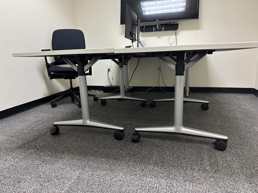 Description We have these Steelcase Coalesse white mobile tables that are 60"x30" training tables that are in casters and can be formed into a conference table when combined.