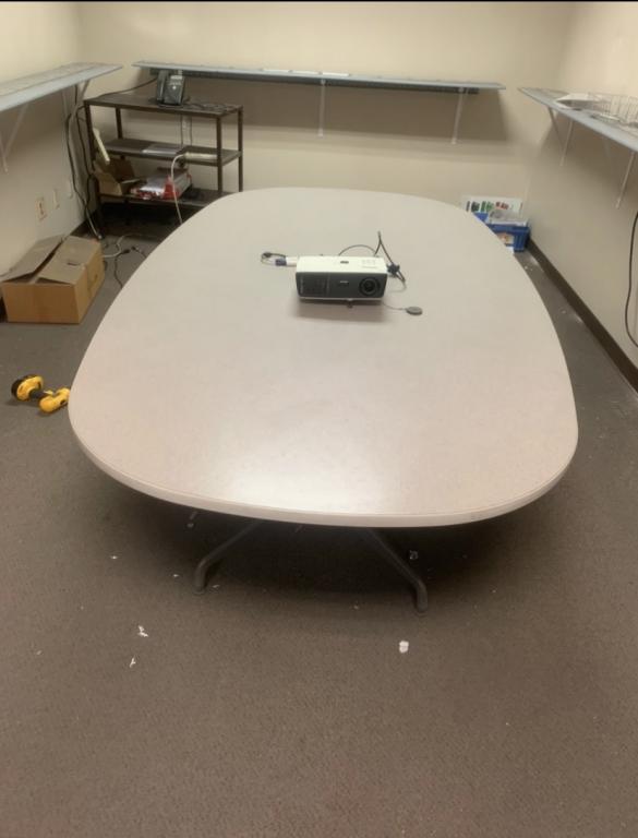Description We have these Herman Miller Eames 8’x54” great authentic table with steel grey base and patterned grey top.
