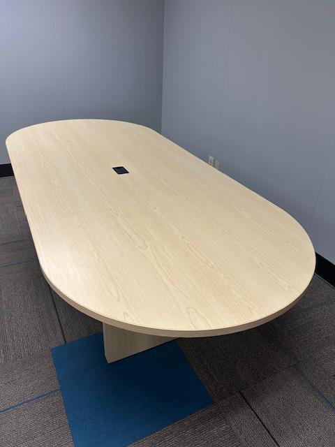Description 96 x 42" Race Track Conference Room Table, light maple. Great Condition!